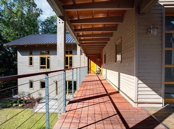 Stainless steel cable railing with Ipe wood cap for contemporary residence in Raleigh, NC