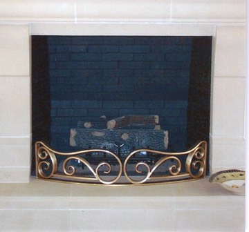 This elegant bronze fireplace fender was custom designed and forged for a private residence in Durham, NC