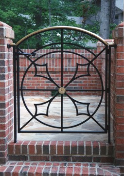 Elegant blend of a traditional design with the clean lines of modern architecture. This gate greets visitors to a private patio for relaxing or entertaining.